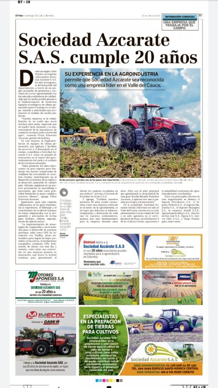 SOCIEDAD AZCARATE SAS, tiene el gusto de presentarles nuestro portafolio de servicios de labores de: Preparación. Levante (Socas), Fertilización y fumigación y la aplicación de tecnología, con el fin de apoyar el desarrollo de la agricultura en el departamento del Valle del Cauca.